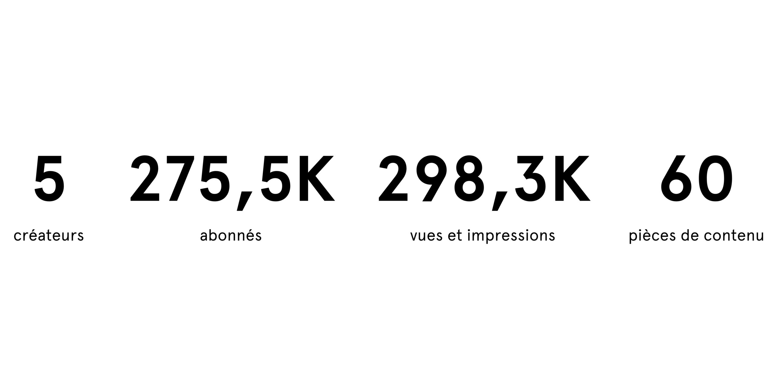 Ensemble, ces cinq créateurs ont diffusé 60 pièces de contenu variées, générant plus de 298K vues et impressions, et atteignant un total combiné de 275,5K abonnés. Ce déploiement a renforcé significativement l’engagement envers la marque, tout en offrant un accompagnement authentique et pertinent à la communauté ciblée.